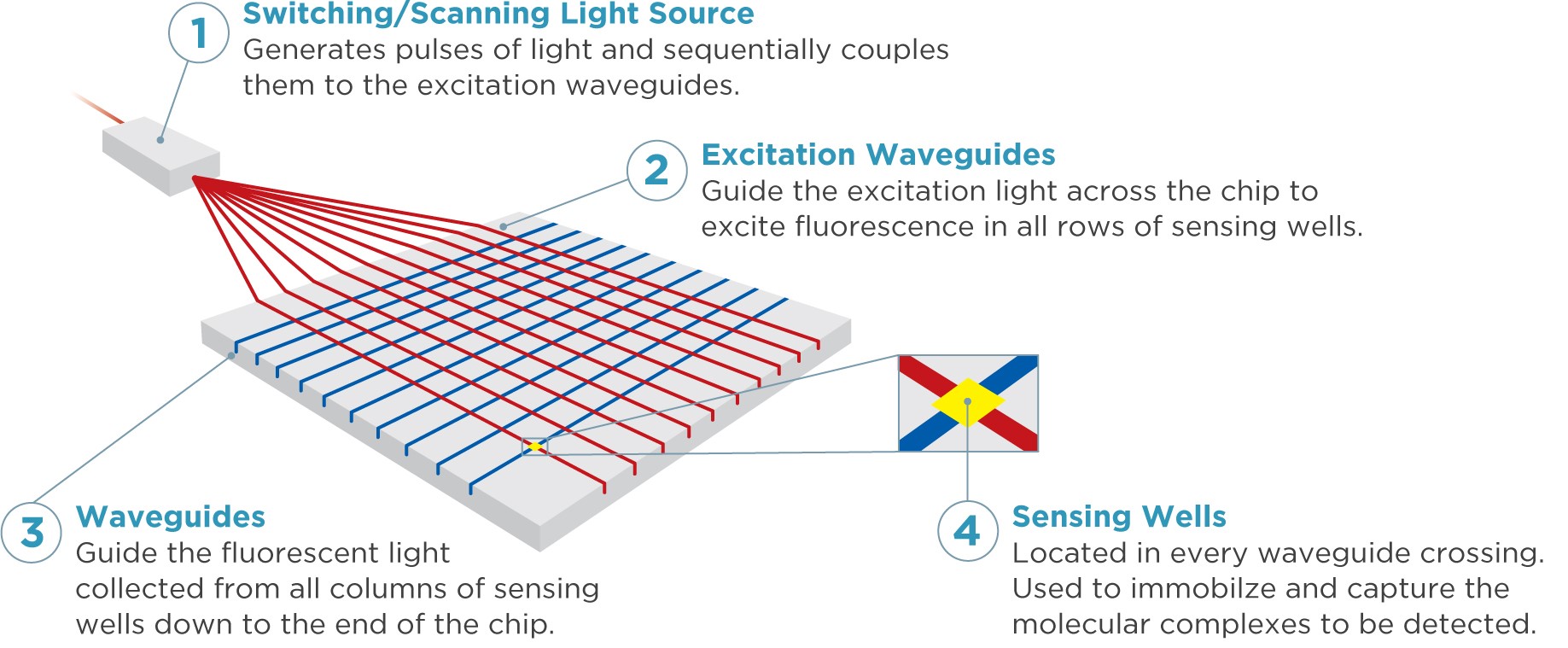 The test menu is designed to detect most currently used drugs based on intelligence from CFSRE(1) and NMS Labs(2). Through its supply chain, AspidaDx is able to coordinate the development of the reagents required to detect these substances, and its cartridge manufacturing technology enables the company to rapidly adapt to current requirements. In its current configuration, the silicon optical waveguide that is the core sensing technology in the AspidaDx cartridge can distinguish 36 chemical signals that permit the detection of multiple targeted compounds and also provide the required quality control information that ensures the system is mistake proof.